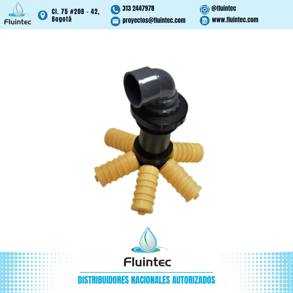 Araña inferior con codo para acoplar a tanques de 18″ ɸ – 2″tuberia conex. Val 4″